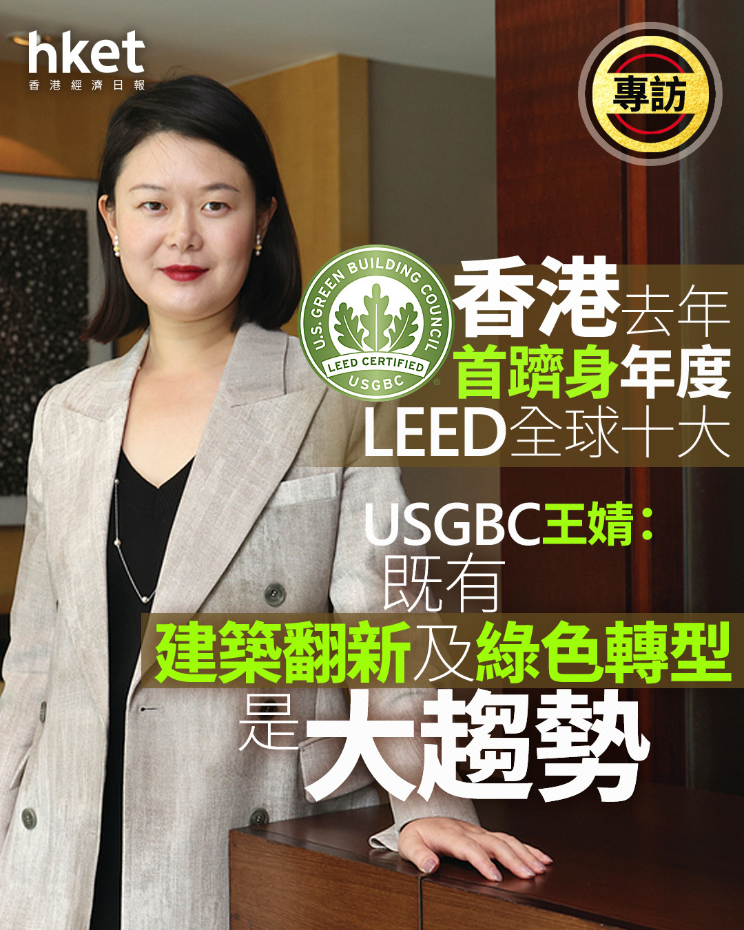 ESG|USGBC王婧:香港去年首跻身年度LEED全球十大 既有建筑翻新及绿色转型是大趋势